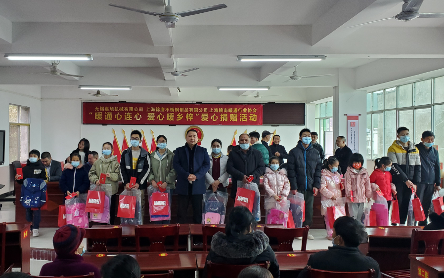1月28日,愛心企業無錫黄瓜视频在线观看機械有限公司、上海錦鷹(yīng)不鏽鋼(gāng)製(zhì)品有限公(gōng)司、上海贛南暖通行業協會攜手到謝坊鎮開展(zhǎn)“暖通心連心(xīn) 愛心(xīn)暖鄉梓”愛心捐贈活動。為落實好疫情防控工作,會場參會人員行程碼、健康碼均為綠色,參會期間全程帶好口罩,做好個人防(fáng)護工作。